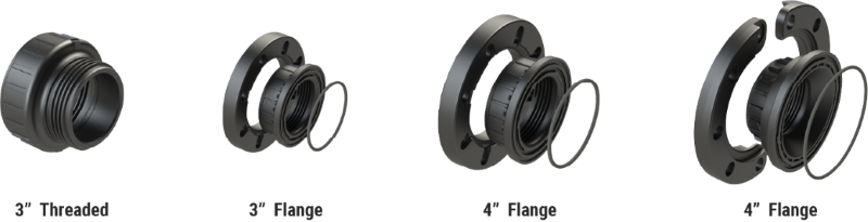 Unique Body design accepts multiple pipe size configurations, allowing for more efficient use of on-hand inventory. Available sizes/connections: